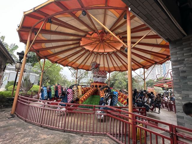 乐园拥有全感官超震撼8K飞行影院“飞越广东”、无限刺激的独创双轨双车过山车“双龙飞舞”、风格各异的高科技游乐设备,可惊险可浪漫、可互动可体验、可学习可娱乐。此外,裸眼3D灯光水幕大湖秀《丝路情缘》、无限欢乐的梦幻花车巡游等精彩演艺,带给游客难忘的沉浸式视觉盛宴。