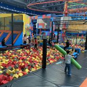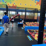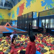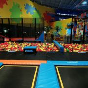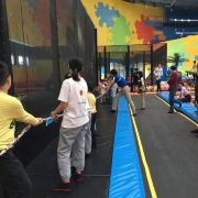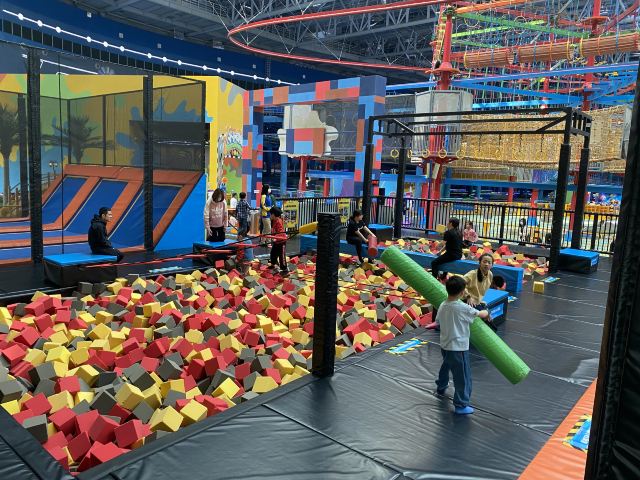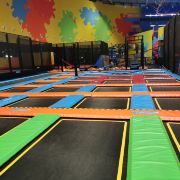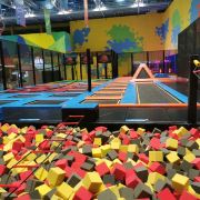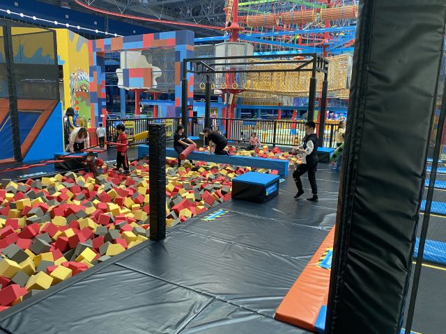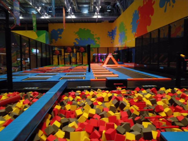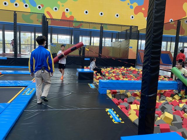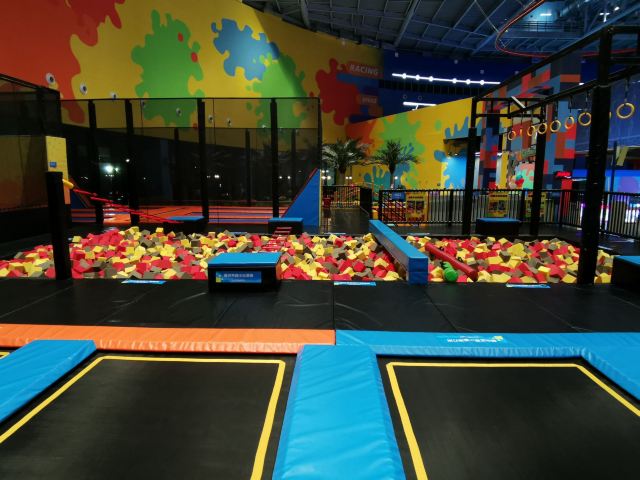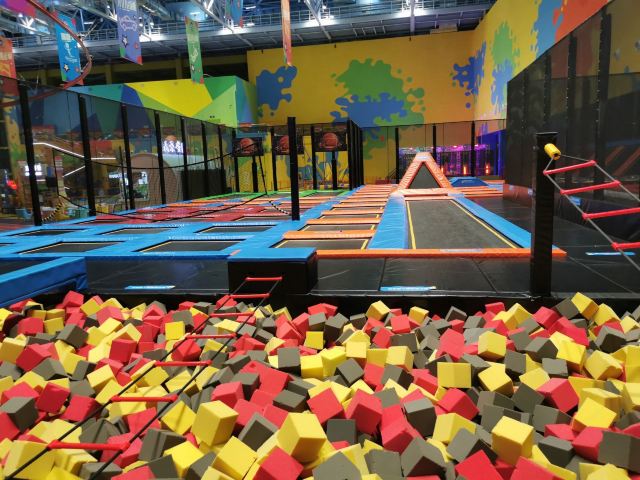 “蹦翻天”设置了自由跳、灌篮、海绵池、躲避球、专业蹦床等多个区域。灌篮区让你变身篮球飞人,轻松流川枫;高弹躲避球更是考验身体平衡和反应速度;Battle Fight是属于勇者的对决;玩累了就到柔软的减压池去歇歇脚吧……