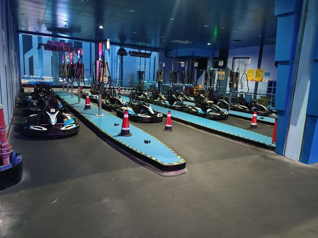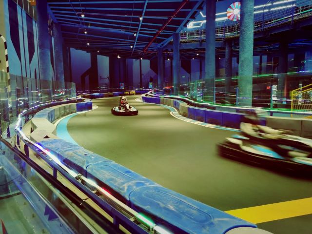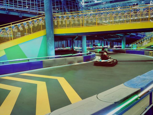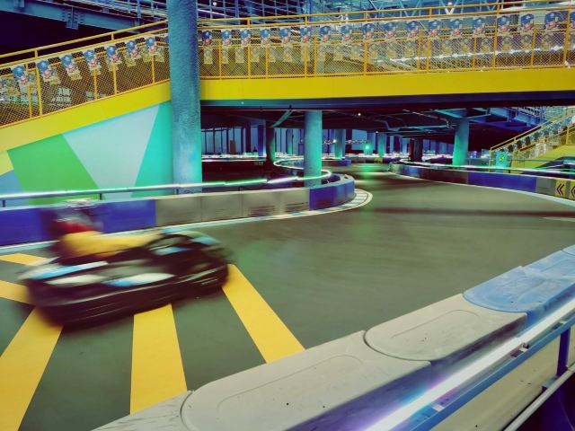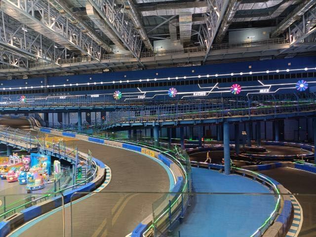 法国原装进口电动无燃烟赛车,噪音低、电子控速、上下穿插双层赛道,全长560米,高70km/h时速,在保证驾驶者安全的同时,将卡丁车的性能充分发挥,让你体验F1方程式赛车现场的速度感受。