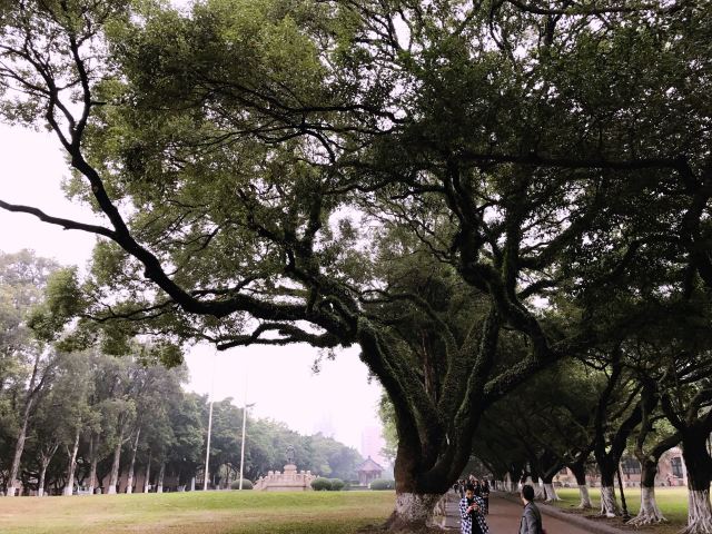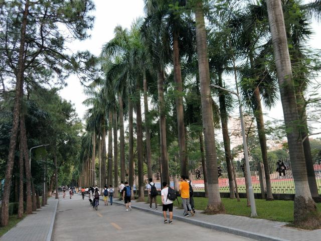 南校门是中山大学南校区的正门,从南门进校的话,首先可以看到主干道两边的参天大树,这些大树都有上百年历史了,走在林荫大道上,心情自有一种宁静。中山大学(广州校区南校园)有名建筑都在主干道上,所以沿着主干道游览即可。