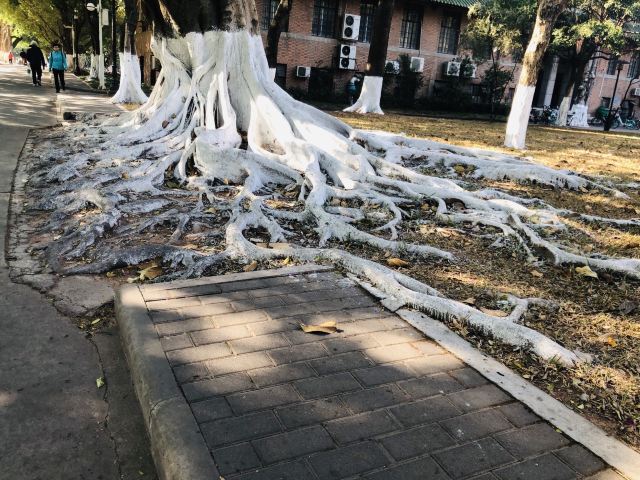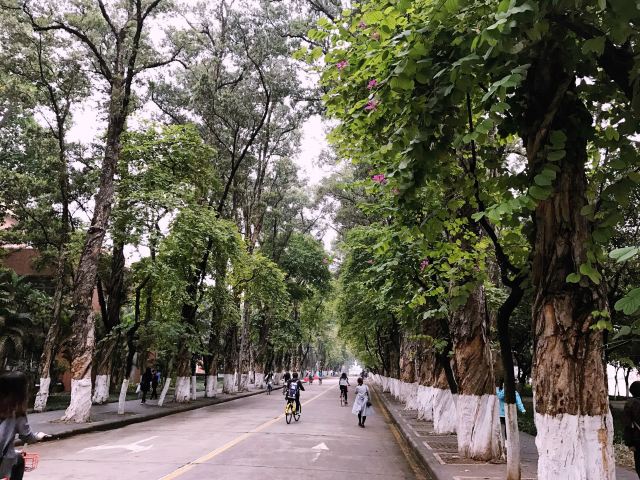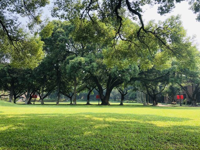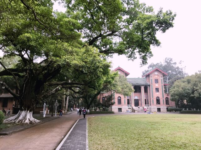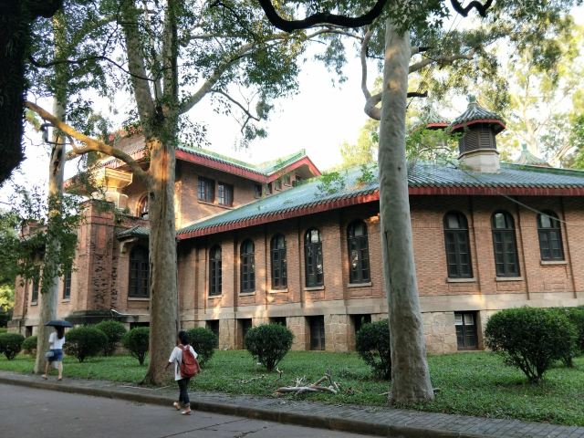 中山大学一共有三个校区五个校园,通常游客会去参观的是南校区。南校区是以前的岭南大学,老房子很多,有很多甚至长满青苔,也有一些已经可以算残壁败瓦了,但校方丝毫没有拆的意思,因为他们见证着中山大学的成长及崛起。红色的老房子周围有郁郁葱葱的树木,大道完全被树荫覆盖,古朴与宁静结合的恰到好处。