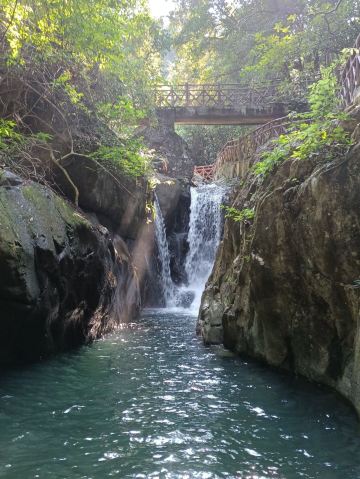 位于流溪河国家森林公园南面的五指山景区,全长2500米的溯溪小道贯穿幽谷的中部,四周翠竹欲滴,溪涧中,流泉飞瀑,山谷间,巨石突兀。