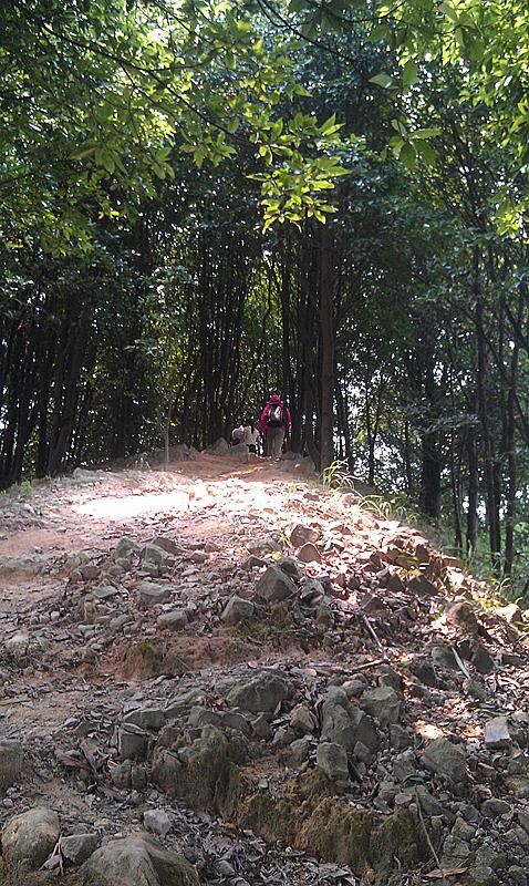 最后的山坡,登山这山坡后就是凤凰山的山顶了,由于山顶上面比较晒,因此我们就在这树林中的小石头上坐着休息了一下再上去。