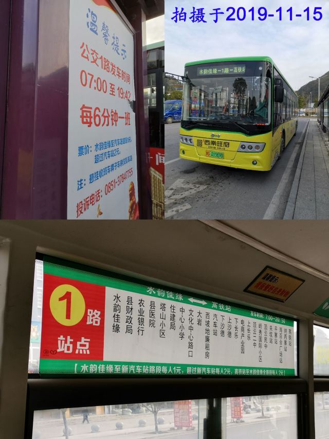 公共交通:如果从关岭县城去,就到关岭汽车站坐“关岭~新铺”车,在化石群游客中心下车,约13块钱,约39分钟。如果从高铁关岭站去,会比较麻烦,乘车步骤(看最后一张图的示意):1、在高铁关岭站坐1路车。 2、去到320国道北侧下车,忘记站名了,好像叫“岭秀国际小区”还是什么的。 3、走到320国道边(向西),坐“关岭~岗乌”车到永宁镇下车,8块钱,约23分钟,问一下司机要转新铺车应该在哪个地方等。 4、在永宁镇坐“关岭~新铺”车到化石群游客中心下车,6块钱,约16分钟。