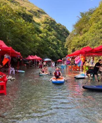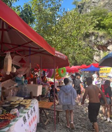 5分 超棒1⃣️暑假一定要早出发才能看到清净的景!我们去得太晚,人太多。昨天我们11点半过才从贵阳市出发的,路上行程近3个小时,遇到堵车,我们两点过才到营地。当时不仅桥上错车都用了一段时间,下到河边的时候发现人满为患[笑哭R][笑哭R][笑哭R]但是水里的人一般多,岸边露营烧烤的超多。