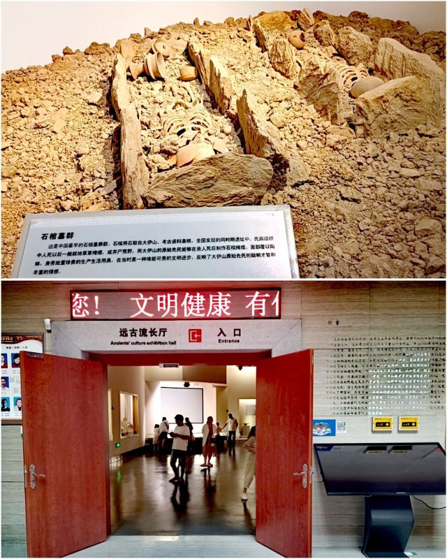 ②远古流长厅:展示了6500年前远古时期的历史和文物,包括中国最早的石棺墓群。