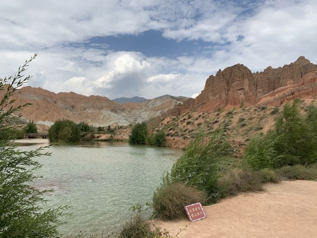 参观完博物馆后,便可以去观看拍摄景区内的丹霞地貌了,这也是游玩景区的重要之处。这里的丹霞面积不大,但是兼具了颜色艳丽和形状多样的特点,拍起照片来十分不错。景区内的女娲峡处,有仿佛捏出来的泥人形状,据说是女娲造人时剩下的泥偶,十分形象;千佛崖则层层叠叠,好像千佛正在一起坐禅的场景,特别壮观。另外,在景区的池塘和河边,还可以拍到碧绿水流背后赤红山崖的景象,更是出摄影大片的好名地。可以在此尽情拍摄,然后乘坐后续车辆返回景区大门,结束游玩。