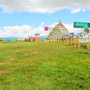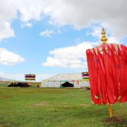 景区位于倒淌河镇旁边,是藏民们在倒淌河旁圈出的一小块区域,门票40元,没有学生票等任何优惠票,因为这是私人经营的景区,里面就是稀稀拉拉一些帐篷、经幡,和在外面看到的风景差不多,看到的倒淌河规模小得可怜,根本注意不到,说是一条河,实际上更像一条小溪,但在一片碧绿中,它的蓝是那么耀眼。