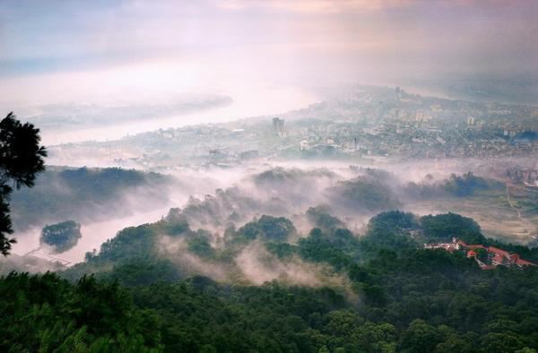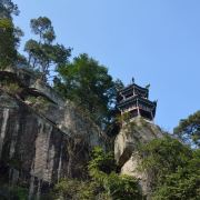 5分 超棒中山飞阁位于桂平西山风景区。中山飞阁,骑石而建,阁高二层,斗拱飞檐,雕梁画栋,四面围以栏杆,游人凭栏远眺,饱览名山风光。原飞阁,为1924年李宗仁督师桂平捐资而建,1944年日寇陷境,毁于战火,七十年代,于旧址拓石重建,阁高二层,中层外三面围以回廊,翅角飞檐,涂漆贴金,蔚为壮观。尔后,国人为了纪念孙中山先生夜临西山游览,遂改为中山飞阁。中山飞阁建造在西山的较高位置上,又是绝壁巨石之巅,得以“向东杰阁早临月”的厚待。每当月明似水的深秋之夜,碧空万里,浩月当空,繁星点点,树枝摇曳,故有“飞阁月明”之称。尤其是中秋之夜,人们纷纷拾级登阁观月,下瞰青峰白石,上观月如银盘,欣赏西山月色和浔州城夜景,此时,山光月色融为一体,秀丽非常,是西山旧八景之一。