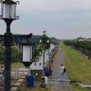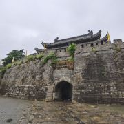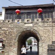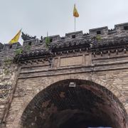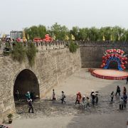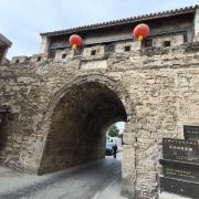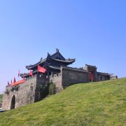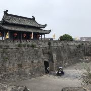 寿县古城有四个城门,西门定湖门,南门通淝门,东门宾阳门,北门靖淮门,登上城墙是免费的,只有进城墙上的城楼参观才要付钱,进南门上的城楼5元,进东门上的城楼10元。西门很小,南门新修过,有三个门洞,推荐去东门和北门,两者都是老城门,都保留有瓮城,东门还立有“淝水古战场”石碑。