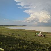 在锡林郭勒大草原的腹地,太仆寺旗贡宝拉格苏木五旗敖包嘎查附近,有一片宛如梦幻仙境的地方-——牛奶湖畔。牛奶湖的湖水呈现出罕见的奶白色,如同煮沸的鲜奶般翻滚着浓郁的乳白。湖泊镶嵌在广袤无垠的碧绿草原中央,与蓝天、绿野构成了一幅超现实的画卷。湖畔绿草如茵,黄色、绿色的草丛中偶尔点缀着几丛紫色马兰花,牛羊在湖边悠然自得地吃草、饮水,为整个画面增添了几分生机与活力。拜访湖畔的牧民人家,热情的主人会端上滚烫的咸奶茶和奶食。坐在蒙古包前,眼前是翻滚的 “奶湖”,口中是醇厚的奶香,耳畔是悠扬的马头琴声,让人真切地感受到游牧文化的独特魅力。在牛奶湖畔,还经常会有草原歌舞演出等民俗表演活动,游客们可以欣赏到精彩的蒙古族歌舞,感受蒙古族人民的热情与豪放,深入了解当地的民俗文化。