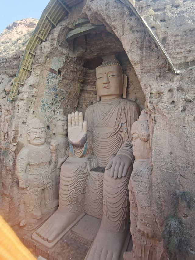 微信小程序须弥山石窟,位于固原市区西北约60公里处,这里在唐代(618-907年)是重要的关隘,同时也是丝绸之路上的重要的关口。须弥山石窟开凿于北魏时期(386-557年),一直延续到唐末,在须弥山石窟之前,佛像大多是泥塑的,从须弥山石窟开始陆续采用了石雕工艺。须弥山从北魏到隋唐历代开凿出众多的石窟,这些石窟反映了不同的时代风格。北魏的石窟佛像鼻梁高隆,保留着印度佛教的风貌,有些造像,脸瘦肩溜,宽袍大袖;隋代佛像则是上身长、下肢短,方面短颈,形象质朴拙重;唐代佛像造型趋向,它的体态丰满,服饰华贵绚丽,表现出唐代艺术的非凡气质。整个景区分为博物馆和石窟两个部分,两处相隔比较远,你也可以乘坐景区内的观光车前往这两处(每处往返10元,另外付费)。游客进入景区去,可以先到博物馆游览,馆中的展品以石窟和佛教艺术为主题,基本都是复制品,在这里你可以了解到丝绸之路上各处的佛窟、藏品以及和佛教有关的典故。参观完博物馆后,可以根据指示牌下山穿过河谷到达对岸的须弥山,一路爬山游览石窟。须弥山石窟原有100多个窟,洞窟的而精美程度与莫高窟等不相上下,但很多已经被人为的破坏,至今造像保存较完整的有20多个窟。第一窟中隋代(581-618年)佛像色彩还保存的不错;旁边是5号窟,就是须弥山石窟的象征——唐代建造的须弥山石窟-大佛楼,是当年武则天在全国范围内供奉弥勒佛的功绩,这座佛像比云冈石窟的大坐佛和龙门石窟的卢舍那佛还要高大。景区中现存造像多的第45、46和48窟,都位于景区中的园光寺范围内,这里有比真人还大的造像40余尊,龛内立佛多为一佛二菩萨,刻工精美。除此外,龛额上有各种小佛,龛座下有手执各种乐器的伎乐人,窟顶有围绕塔柱翱翔的飞天浮雕,千姿百态,琳琅满目。这些石窟都建造于北周(557-581年)时代。相国寺区的51号石窟,是须弥山中大的石窟,但损坏比较严重,在上世纪60年代,须弥山附近修建水库,当时上万名工人就居住在这些石窟中。须弥山石窟的交通并不算便利,没有直达公交车,需要游客在固原市区乘坐中巴到达三营镇,然后在镇上换乘私人的小车前往景区。