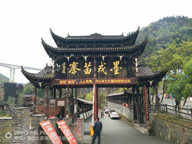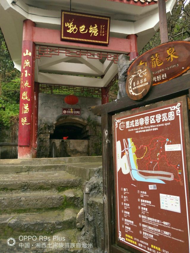 去凤凰古城一日游的旅行团在返程张家界途中把我们带来了这里。“墨戎”据说就是有龙的地方,墨戎苗寨里面共有1000多户5500多人。景点门票是导游负责买的,经过景区美丽的大门后,过一座石桥,比较搞笑的是桥上还有几个完全裸体的当地小孩在表演跳水和游泳。然后再跟寨门口一群苗族美女对歌喝酒击鼓以后才能进去,不花钱这边都是不让你自己拍照的,进寨门时有专人给每位游客拍照,出寨子时你可以选择花20块钱把照片买走。进去寨子后基本就是一条狭窄的容易迷路的山道,每组有个漂亮的当地苗族小姐姐带队。巫傩(nuo)堂看了个很一般的仙人合竹表演,然后就是各种推销商品。老奶奶家卖的100元3罐的古丈毛尖,剩下1个小时就是让你去银饰作坊自由逛买银器,比起凤凰古城里每克银是要便宜几块钱,以前有人抱怨他家银饰贵,不过今年最近国际银价暴涨一倍,他家的银饰还是从最基本的32元/克起,相比还能接受。不知道是导游良心发现还是现在被取缔了,很多人抱怨的苗医和长龙宴都没给我们安排,总共逛了2-3个小时就从景区走人啦。