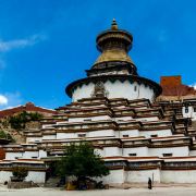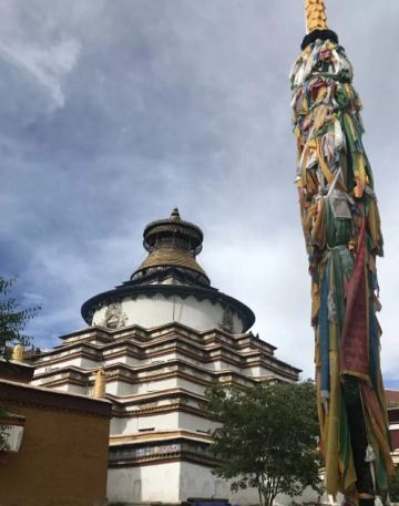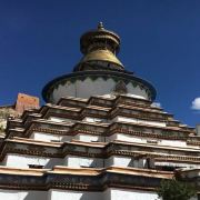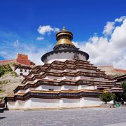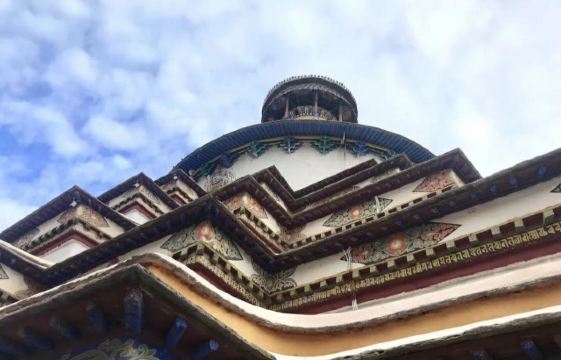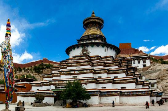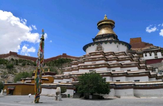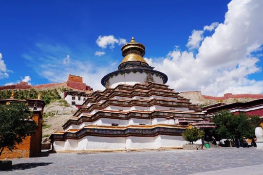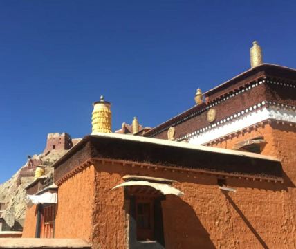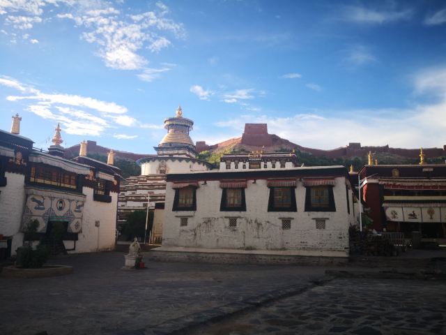 白居寺位于西藏江孜县县城内,始建于十五世纪初,是藏传佛教中少见的萨迦派、噶当派、格鲁派三派共存的寺庙,以精美的建筑、特殊的宗教价值和保存完好的壁画和造像而著称。寺内有白居塔,塔内绘有十万余尊佛像,又名十万佛塔,是游玩白居寺必不可错过的。白居寺是一座典型的藏传佛教寺庙建筑,寺中有塔,塔中有寺,塔寺浑然天成,相得益彰,是十三世纪末至十五世纪中叶后藏地区寺庙建筑的典型样板。寺庙是三派并立,每个教派都有5-6个扎仓,寺内现有扎仓16个,使得寺庙看起来外观宏大。沿着甬道走进去,迎面既是寺庙的措钦大殿,殿内供奉三世佛,东西两侧为净土殿。殿堂西北角有一座巨大的强巴佛鎏金铜像,高8米,据说是用14000公斤黄铜铸成的。大殿的立柱上挂满五彩的哈达和历史悠久的唐卡,四壁绘有精美的佛教壁画,感觉庄严而神圣。大殿分三层,第三层是称为夏耶拉康的佛殿,殿内的壁画颇有名气,内容有坛城、莲花藻井和佛传故事、本生故事等,有兴趣的话可以认真看看。游玩白居寺,必不可错过寺内西侧的十万佛塔。塔有九层,高达32米,有77间佛殿、108个门、神龛和经堂,层层叠叠,非常壮观,是中国建筑史上独特的珍品。各殿堂内墙壁上绘有佛像,佛像色彩丰富,对比强烈,庄重而精美,据称佛像有十万余幅,故而得名十万佛塔。此外,塔内还存有千余尊泥、铜、金质的佛像,堪称是一座佛像博物馆。从塔门进入,沿着楼梯可逐层观看,遗址可以走到塔的顶端。顶端为一个环形的平台,可以俯瞰整个白居寺。原则上藏传佛教寺庙都是不允许拍照的,十万佛塔内却可以拍摄,不过要收费10元,其实还是蛮划算的。出于对古老壁画的保护,建议拍照时不要开启闪光灯。