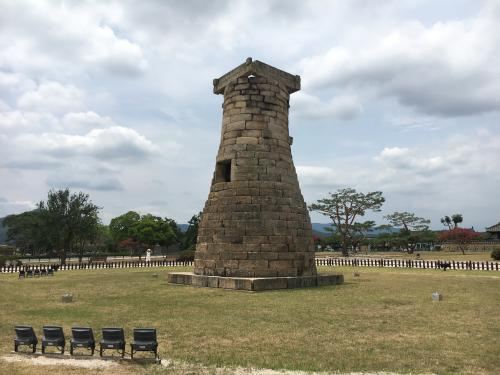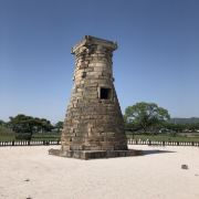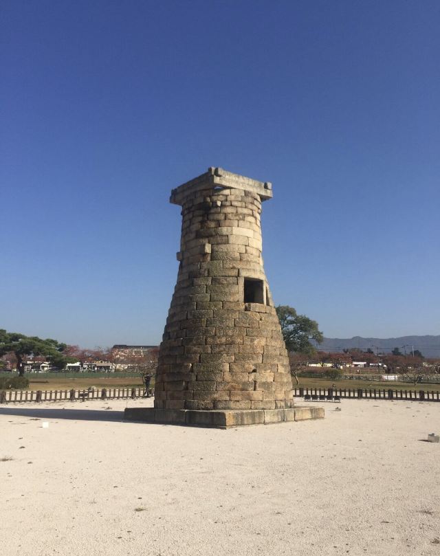 瞻星台顾名思义就是古时候用来看星星的地方,建于新罗27代王善德女王时期,新罗时期主要作为天文观测台使用。整个瞻星台是由花岗岩所建,高9.17m,上端直径3.1m,下部直径5.17m,地基石座的单边边长为5.35m。双层地基石座与祭坛呈方形,大小分别是长台石的8倍和15倍。石座上则为27层的圆筒型塔身。整个瞻星台下宽上窄,竖直而立。瞻星台每层高度约为30cm,顶端为双层井字形石坛,据推测这里曾是某种观测仪的放置之处。上方是井字形状,而连接的部分却是酒桶状的圆体,因为常被误称为“摘星台”。