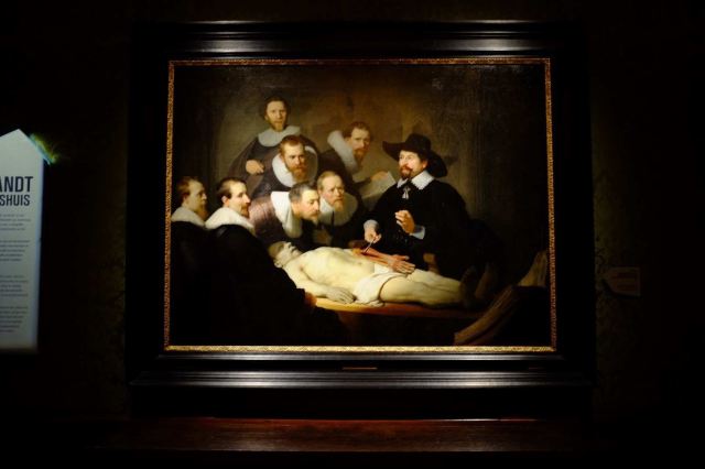 莫里茨皇家美术馆的镇馆之宝是17世纪与伦勃朗齐名的荷兰画家维米尔于1665年创作的油画—《戴珍珠耳环的少女》。许多现代艺术家认为,少女的回眸一笑足以与蒙娜丽莎的微笑相媲美。最有名的是伦勃朗的成名作《杜尔普教授的解剖课》。