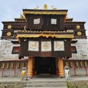 旅客参观大寺的门票是20元一个人,在大门口上了斜坡就见到有个简易的牌子写着门票和划着箭头的字样,我们就很乖地过去买门票,当时里面也没有人卖票,我们还等了一会儿,有一个小朋友僧人过来,马上跟他说要买票,钱付了,但是没有给我们门票,说是现在直接过去就行了,而且后来也没有人询问过我们关于门票的事宜,看来我们太老实了。