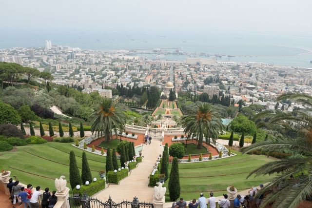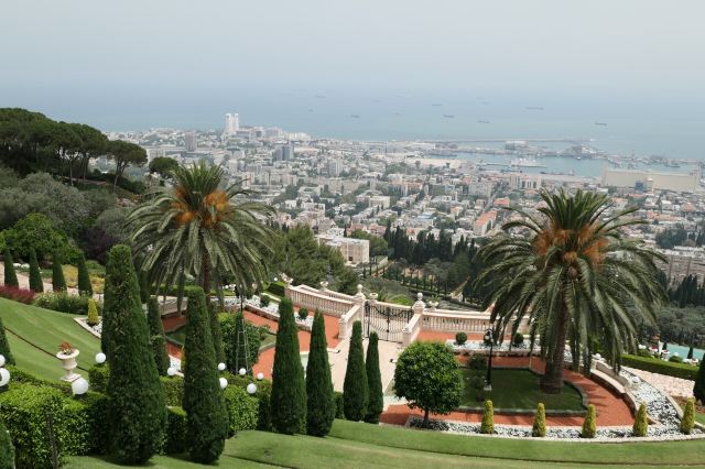 海法是以色列最美的港口,而巴哈伊花园坐落在海法的卡梅尔山上(海拔546米),面朝地中海。这里是巴哈伊教的先驱巴孛的安息之地,是巴哈伊教的圣地之一。巴哈伊教起源于19世纪上半叶,1844年,巴孛再波斯宣称接受天启并开始传教,随后被当局流放至阿塞拜疆,1850年遇难。后来,一个自称是巴孛圣使的人出现了,那就是巴哈伊教的创始人侯赛因阿里,1853年他被奥斯曼帝国流放,辗转后来到阿卡。1981年,他再海法选址建陵墓。2001年,经过数代信徒一百多年的努力,耗资2.5亿美元的巴哈伊花园建成,设计师加拿大建筑师威廉姆麦克斯韦尔设计了金色穹顶的白色楼阁,融合了中西方文化,不仅有波斯花园的简约风,也有古典欧式花园的风格。整个花园呈阶梯状,共有19层平台,以巴孛陵寝为中心,层层叠叠平台之间还有大理石铺砌的阶梯,是整个花园的中轴线,若从山脚至山顶全长近1公里,高度高达225米,几何图形完全对称。2008年,巴哈伊花园和阿卡的巴哈乌拉神殿一起被列入世界文化遗产名录,是该名录下第一个与近代宗教有关的建筑群,如今巴哈伊花园向游客免费开放,每年的维护费高达四百多万美金。