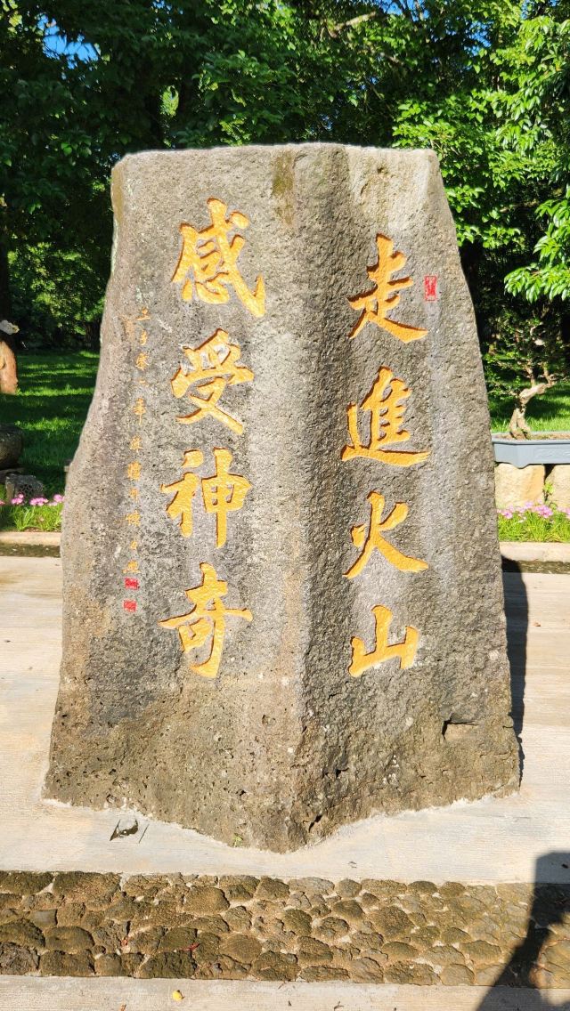 顺着景区的步道往里走,沿路是葱茏的热带植物,还可以看到诸如玄武岩、熔岩流等火山喷发遗留下的景观,还有一个火山石器文化园,展示2000多年前火山地区的村落用火山石堆砌的村门、制造的石磨、石碗、石盆、石桌、制蔗器等等,置身其中,仿佛回到石器时代。