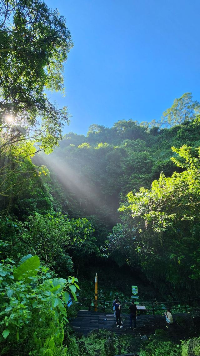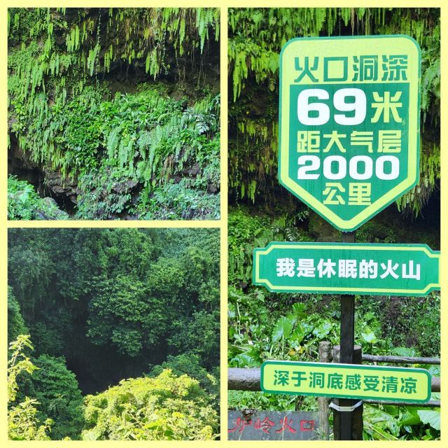 除了环火山口观景,你还可以沿步道进入风炉岭火山口底部,这里的形状好像一口大锅,大的地方据说可以容纳万人。火口里非常凉快而且植物很多,是一个天然的氧吧,同时,还可以看到火山渣、熔岩饼、火山弹等火山喷发的遗物。
