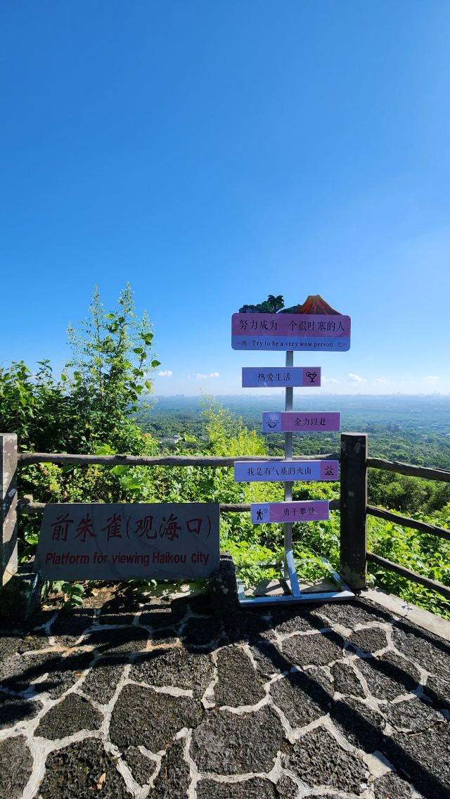 沿着环山步道有5个观景点,可以观赏火山口的景色。其中,马鞍岭火山口是海口的制高点,海拔222.8米,天气晴好的时候视野很好,很多游客在这里拍照留念。另一个值得一提的观景点是前朱雀(观海口)观景台,从这里可以远望琼州海峡的碧海蓝天,看海口城市高楼林立,如孔雀开屏;往南看是热带雨林覆盖的火山群此起彼伏,风光迷人。