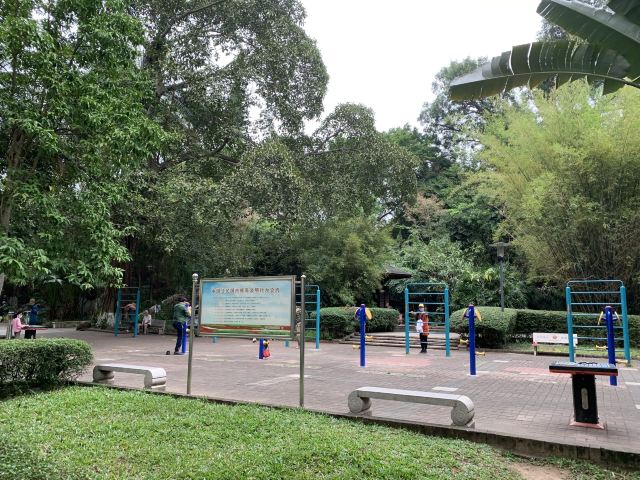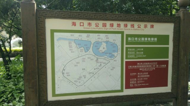 海口人民公园,全园按功能分区划分东西湖游览区、烈士纪念区、热带植物标本区、安静休息区、兰圃、动物区及生活区等。