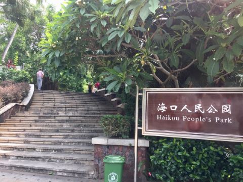 5分 超棒海口人民公园是海口市目前最大的公园,位于市中心,始建于1954年,总占地面积440亩,属台形丘陵地。全园按功能分区划分东西湖游览区、烈士纪念区、热带植物标本区、安静休息区、兰圃、动物区及生活区等。空中俯望海口,公园犹如楼海中浮起的翠绿蓬莱。海南解放纪念碑在公园正门入口处,屹立在大英山上,为纪念长期坚持琼岛革命和渡海作战而英勇牺牲的烈士,于1954年而建。公园内建有冯白驹将军雕像和冯白驹纪念亭。“冯白驹将军雕像”雕在用十三块花岗石砌成的五座山峰中最高一座山峰上,神态庄严、刚毅,栩栩如生。雕像基座正面刻着邓小平书写的“冯白驹将军”五个金字。纪念亭由三个亭和长廊组成,布局上与雕像自然地融为一体。碑、像、亭三者互为呼应,为公园增添了肃穆雄壮的景观。公园正门前有东湖和西湖,湖畔椰林环绕,杨柳翠绿欲滴,绿荫蔽日,凉爽悄然。东湖呈椭圆形。湖中有个湖心岛。岛上楼阁金碧辉煌。由九曲桥连通园门。西湖是短脖葫芦状,水面宽阔、每当皓月当空,椰风流韵,东、西湖面银鳞闪耀,与大英山的耸翠相映成趣,湖光山色,椰影婆婆,泛舟点点,令人心旷神怡。公园内还有动物园,栖息着热带、亚热带动物,现又新辟了水族馆等,是海口市民休闲晨练的好地方。