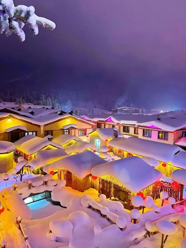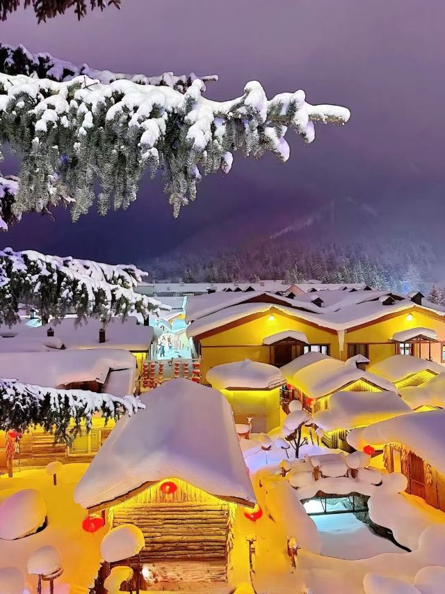🌟🎆 看一场雪乡的夜景,灯光与雪花交织,仿佛置身于梦幻仙境。🌟🌟