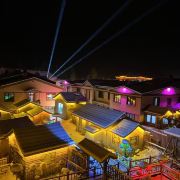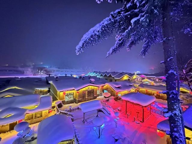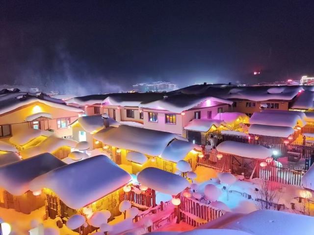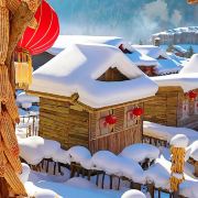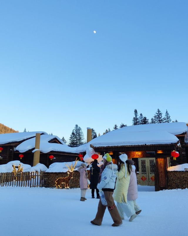这里的雪景堪称一绝,皑皑白雪如绵密的糖霜,将每一寸土地、每一座房屋都装点得圣洁无暇。远处山峦银装素裹,与蓝天相映成趣,构成了一幅绝美的水墨画卷。漫步在雪韵大街,木屋错落有致,大红灯笼在白雪映衬下格外娇艳,浓郁的东北风情扑面而来。民俗文化展示精彩纷呈,从传统的剪纸艺术到热闹的东北二人转,让人目不暇接,深切感受到这片土地的独特魅力。