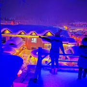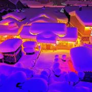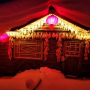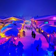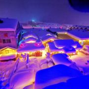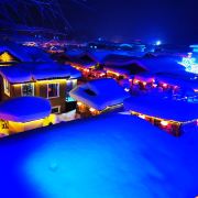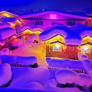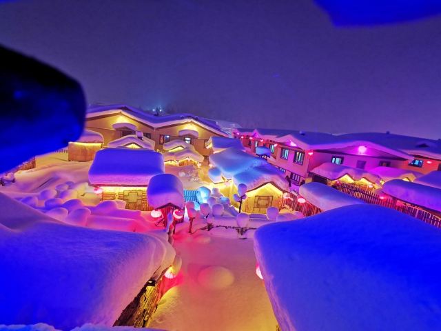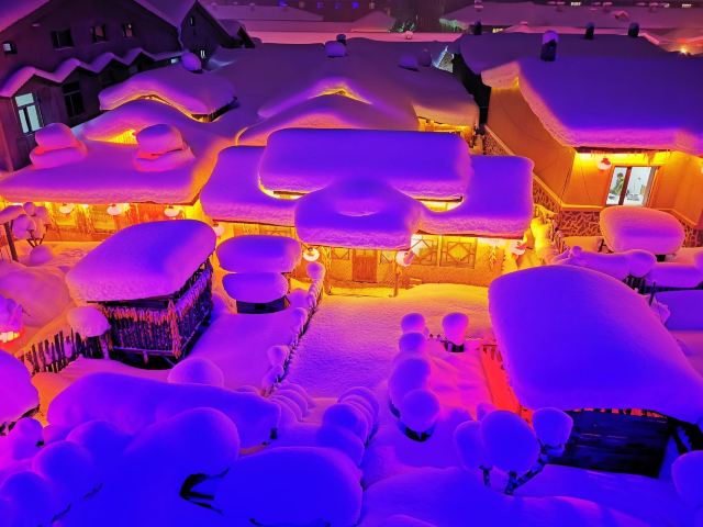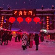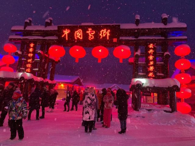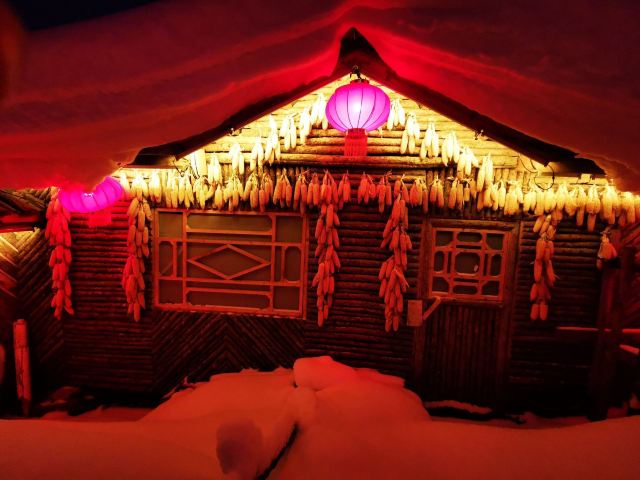 雪韵大街是中国雪乡的主干道,也是较热闹的街道,冬季晚上的夜景很美。这条不过500米长的街道两侧开着各种商店、旅馆,也能看到不少餐馆和摆在路边的小摊,人气景点梦幻家园也坐落在这条街上。雪韵大街较早是林场的森林小火车站,如今成了中国雪乡的商业街,在旅游旺季的夜晚,街道上灯笼齐明、游客成群,俨然一派繁华的景象。你可以在路边买点冻柿子、冻梨等小吃,也可以去农家餐馆品尝东北美食。值得一提的是,梦幻家园的后面有座不高的小山包(在园外,可从雪韵大街旁边的小巷过去),是俯瞰村子全景的好地方,常常被长枪短炮们占领,傍晚可以拍摄到袅袅炊烟笼罩下的村庄美景。