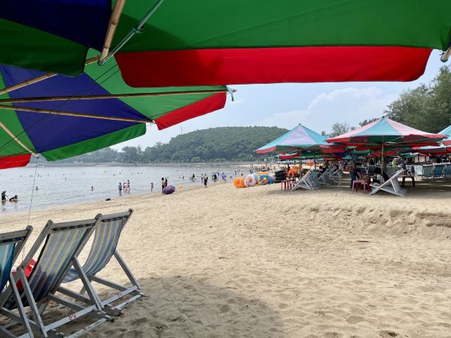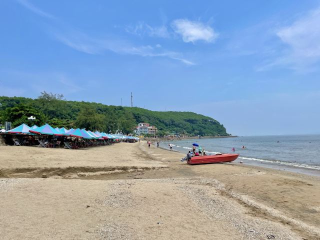 涂山半岛的海滩分成三个区,其中一、二区海水混浊,含盐量高;三区海水洁静,沙滩细软,风平浪静,是理想的海滨浴场。