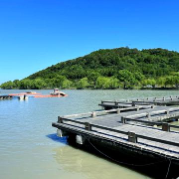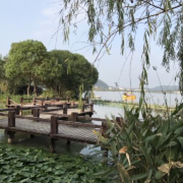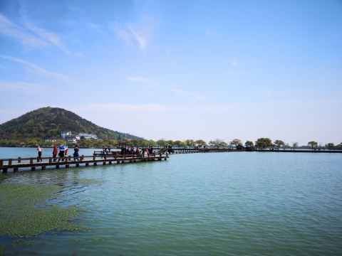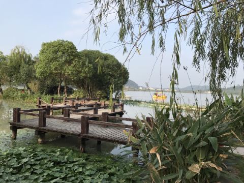 来到南北湖景区的游客几乎都要来走走这条江湖水一分为二的鲍公堤,堤的两侧分别有桥通往白鹭洲和蝴蝶岛。上岛的木桥曲曲折折,十分雅致,岛上有茶室,品茗赏景是不错的体验。如果时间充裕,不妨去到长堤东面的码头划船(每人30-40元半小时),别有一番滋味。