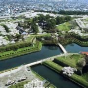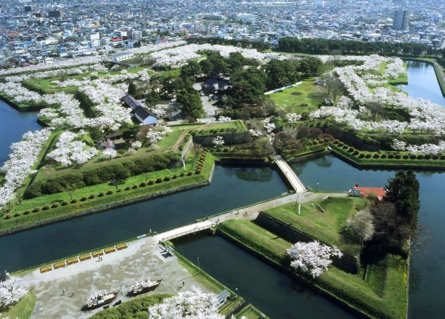 五棱郭公园位于五棱郭内。它是江户时代建造的一个星形要塞城郭,以西洋建筑方式建造而成,这座曾见证历史的城堡如今只剩下了城墙的外廓,内部则被改辟为一座城市公园,即五棱郭公园。