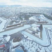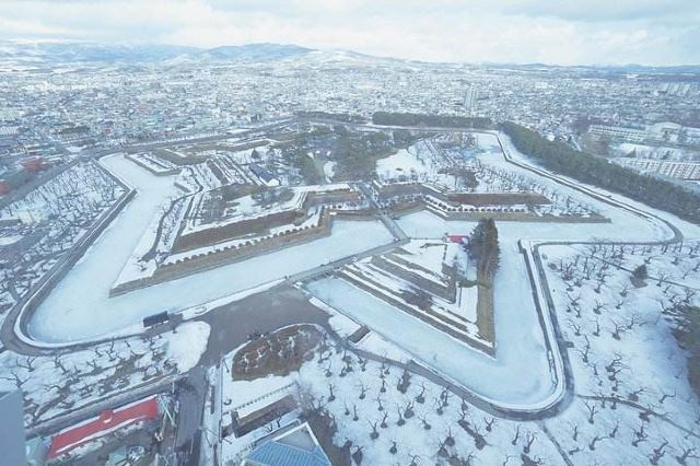 此外,在公园外还立有一座五棱郭塔,登塔可以俯视公园的全貌,五角星芒的形状清晰可见,更能远眺函馆市街景。