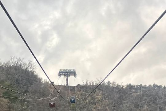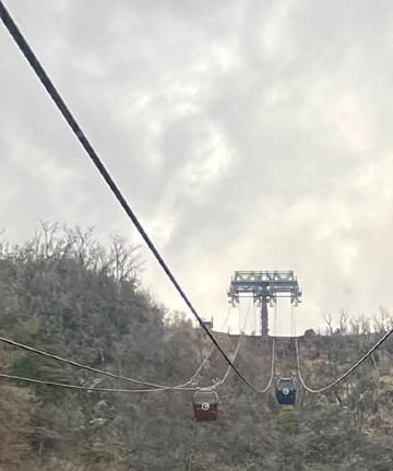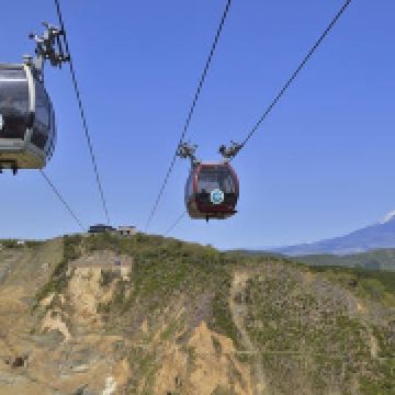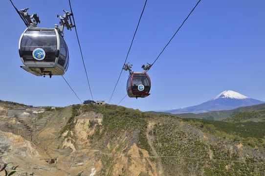瑞士制造的缆车的大面玻璃窗以360度眺望箱根美景,让人不敢相信此地距离东京不过几个小时。 中途的车站有大涌谷站,这里除了可以眺望富士山之外,还是至今仍可看到火山活动痕迹的知名温泉区。