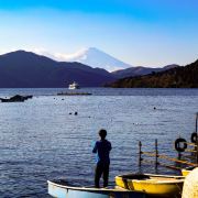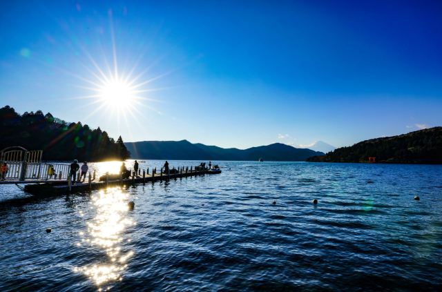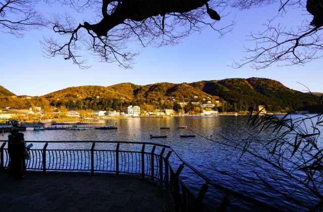 芦之湖形成于3000多年前的火山活动,位于箱根町西侧,驹形山南麓,是箱根的旅游中心。芦之湖背靠富士山,面朝富士山,四季景色各异,别具风味。环湖小径两旁绿树成荫,松杉葱郁,景色宜人。湖中盛产黑鲈和鳟鱼,是许多日本人泛舟垂钓的胜地。湖的北岸坐落着两个静谧美丽的城镇:久尻和桃园台。游客可以乘船游览湖光山色,尽情欣赏这里的秀丽风光。