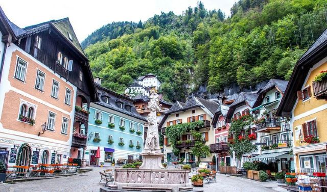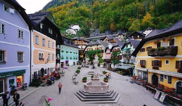 5分 超棒哈尔施塔特的小镇中心,可以说不用刻意走一定会到,就在小镇那个网红教堂后面,这里有不少餐厅,小店,可以吃吃饭喝个咖啡,很不错