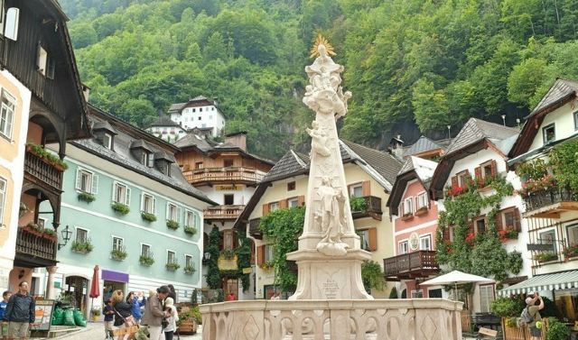 5分 超棒位于哈尔施塔特小镇的核心位置,距离地标新教教堂50米左右。这个广场的中心是个雕像,广场是三角形,面积非常小,绕广场一圈可能都用不了1分钟,不过下午的高峰期游人还是挺多的。