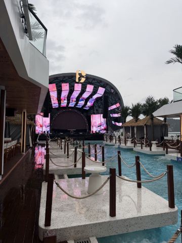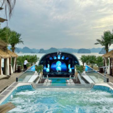 室外舞台是一件独一无二的建筑杰作,其引人注目的弧形穹顶的灵感来自下龙湾雄伟的石灰岩小岛。它配备了先进的音响和照明系统,承诺带来迷人的视觉和艺术体验。