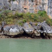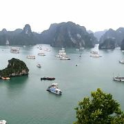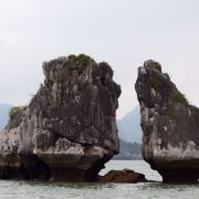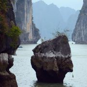 • 下龙湾姿态各异的奇石矗立于平静的海面,酷似中国广西的桂林山水,又被称为“海上桂林”;