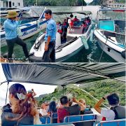 ②快艇+小船(游览“月亮湖”):快艇约25分钟,急转弯时最刺激,可触摸海浪以及快艇后的拖尾让人深切感受到大海灵动,拍照效果很棒;小船是船夫手工划的,每船10多人,会通过山洞划进月亮湖。月亮湖是必打卡的景观,湖四周都是山峰,因从高空俯视其形状如满月而得名,山洞是唯一通路,湖水是海水,山上有野生的猴子。该码头还有双人皮划艇,西方人更钟爱,适合自由行体验。