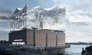 2016 年10 月31 日竣工交付,2017年1月11日、12日德国汉堡市新地点——易北爱乐音乐厅隆重开幕,成为了吸纳汉堡人全和世界游客的新游览胜地。音乐厅位于汉堡港口新城并与码头相对,紧邻世界文化遗产“仓库城”。在易北河中游码头仓库的红色砖墙之上,这样一座冰山般闪亮耀眼的玻璃建筑巍然屹立,把过去和未来紧紧相连。