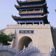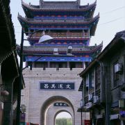 韩城古城位于陕西省东部韩城市,始建于惰唐时期,金大定四年(公元1164年)始建土筑城墙,明崇祯十三年(公元1640年),由当时担任当朝宰相的韩城人薛国观奏请朝庭批准,倡议当地地方官员、绅士捐资改建土城墙为砖墙,后多次修缮,遗存至今。古城为一条由北向南长约千米、东西宽约800米的古街。古街形似长龙,北端逐步抬高为圆觉寺,寺内有一赳赳宝塔,似龙头。街南端有一古石桥,似摆动的龙尾。似龙身的正街和东南西北四关,有纵横交错、四通八达的72条巷通。古城内分布着名人故居、民居四合院、文庙、城隍庙、东营庙、北营庙、庆善寺、状元祠、县衙、闯王行宫、古店铺等众多古建筑。其中具有保护价值的店铺及民居达770多栋。韩城古城为国内六个保护较好的明清古城之一。