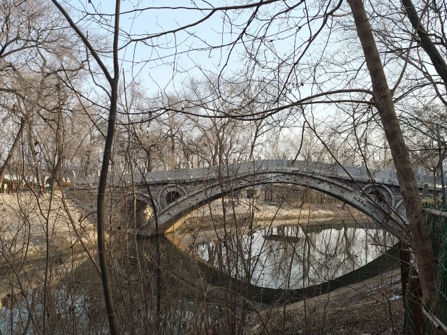 第一处,位于未上桥的围栏处左侧,可跨过围栏,向下行走,拍出一张桥横跨河面的美图