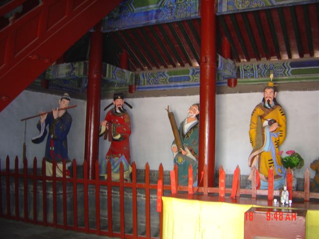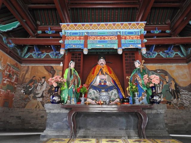 沿着中轴线漫步,蓬莱仙境照壁上“蓬莱仙境”四字龙飞凤舞,引人遐思。穿过丹门、午朝门,八卦亭古朴雅致,亭旁古莲花池波光粼粼。钟离殿、吕祖殿庄严肃穆,供奉的神像栩栩如生,仿佛在诉说着古老的传说。
