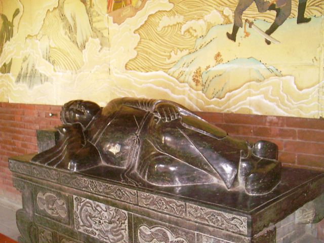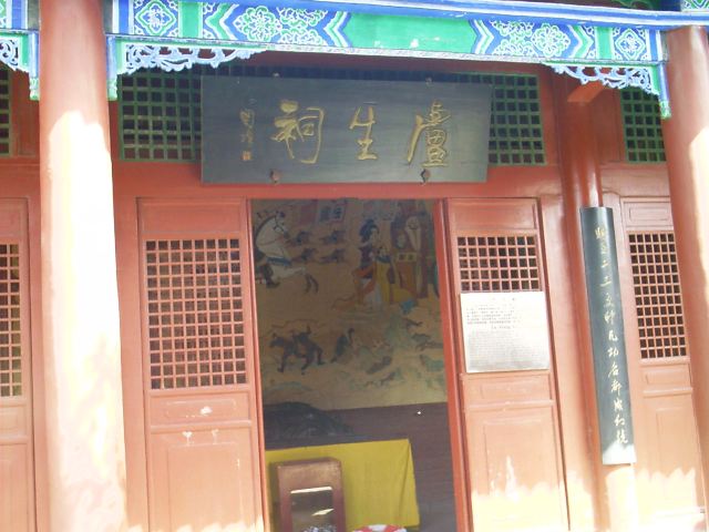 吕祖殿后到了卢生殿,殿内有大青石雕刻的卢生侧卧睡像,神态形象维妙维肖。东、西、北面墙壁上绘有壁画,描绘了卢生“富贵荣华终幻因,黄粱一梦了终身”的故事。殿前回廊有明、清时期的碑碣。