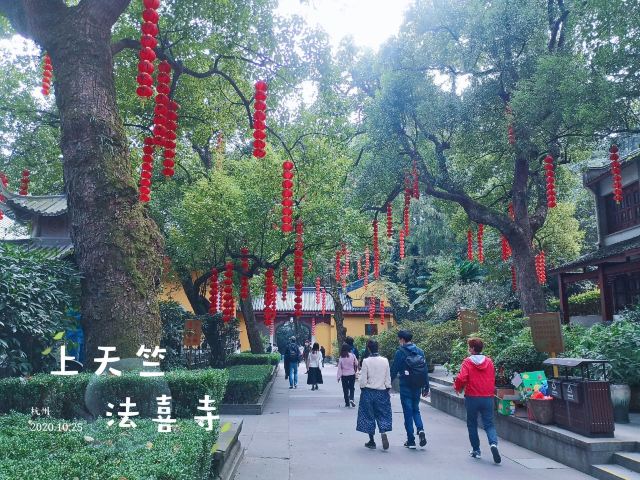 5分 超棒来到灵隐寺游玩之后,千万不要就慌忙离开了,因为在灵隐寺不远,还有三座值得逛的寺庙,第1个寺庙就是法喜寺。这也算是整个寺庙群当中最火热的景点了,因为他有一个网红的打卡地在这里拍照需要排队,不过大家还都是挺有秩序。