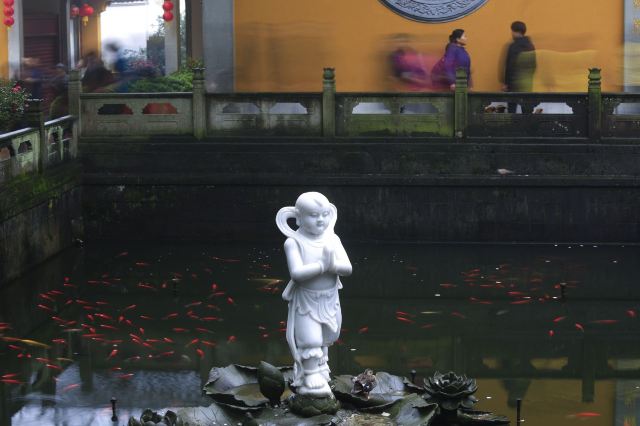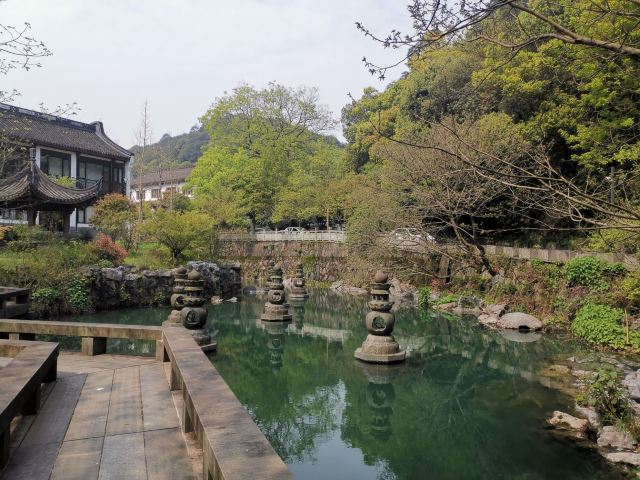 杭州灵隐寺西南侧有一条小溪,天竺溪,沿溪边有条小路,天竺路,从下到上有三个著名古寺,下天竺法镜寺,中天竺法净寺,上天竺法喜寺。这里本是佛门胜地,由于新冠疫情,所有宗教场所都不得开放。但沿着溪边游步道走走