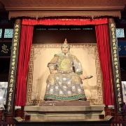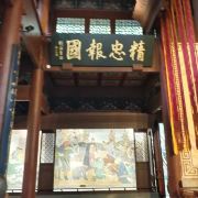 步入景区正门,是一个方方正正的院落,正前方是岳王庙的主体建筑忠烈祠。正殿是供奉岳飞的殿堂,门额上挂着“心昭天日”四字匾额,非常庄严。步入正殿,迎面是岳飞一身戎装的全身像,头顶高悬着他的誓言“还我河山”。大殿四周的墙壁上的壁画记述了岳飞的生平,其中“岳母刺字”的经典广为流传。正殿两侧,供奉的是岳飞的两员大将牛皋和张宪。