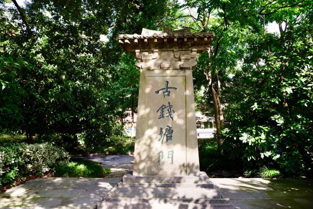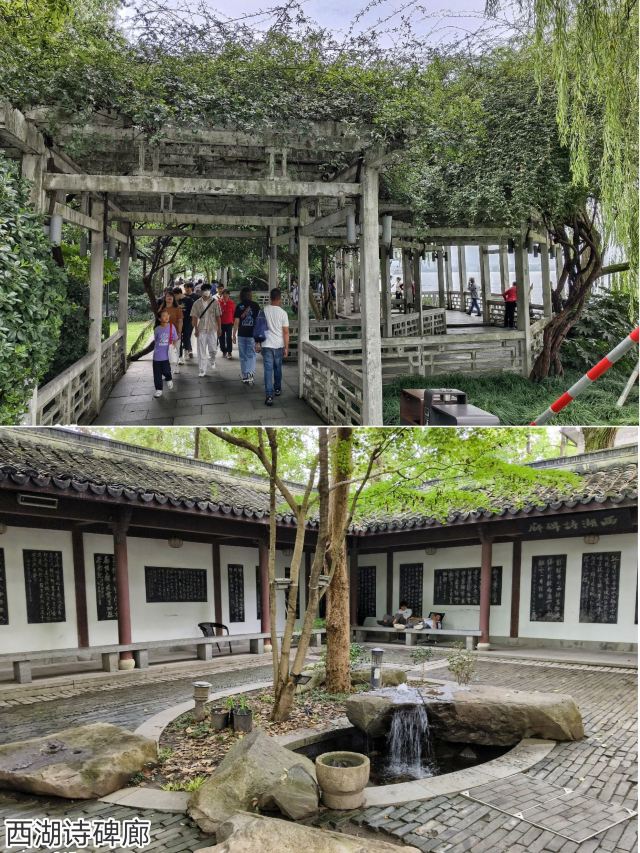 ①圣塘闸亭:因圣塘闸而得名,是西湖最古老的“石函三闸”之一,始建于南宋咸淳三年(1270年),用来调节西湖水位,目前是售货亭,亭壁刻有唐长庆四年(824)杭州刺史、著名诗人白居易的《钱唐湖石记》,钱唐在唐武德四年(621年)因回避国号名讳而改为钱塘。